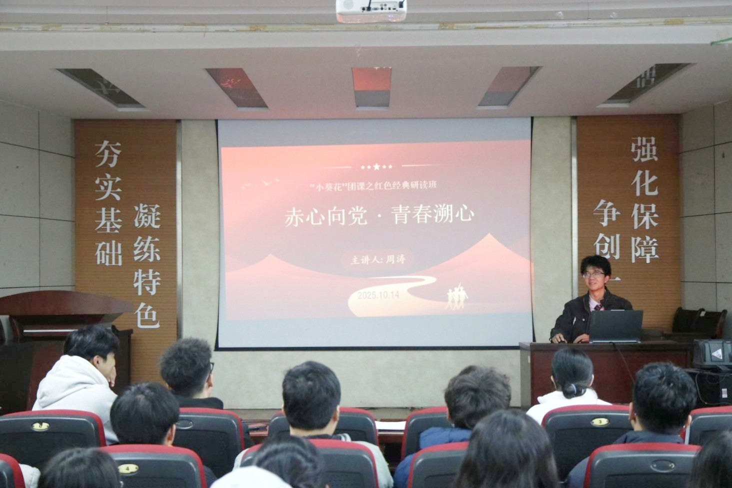 2025年10月14日,化工学院“小葵花”主题团课之红色经典研读班第三讲在J2-104开讲...