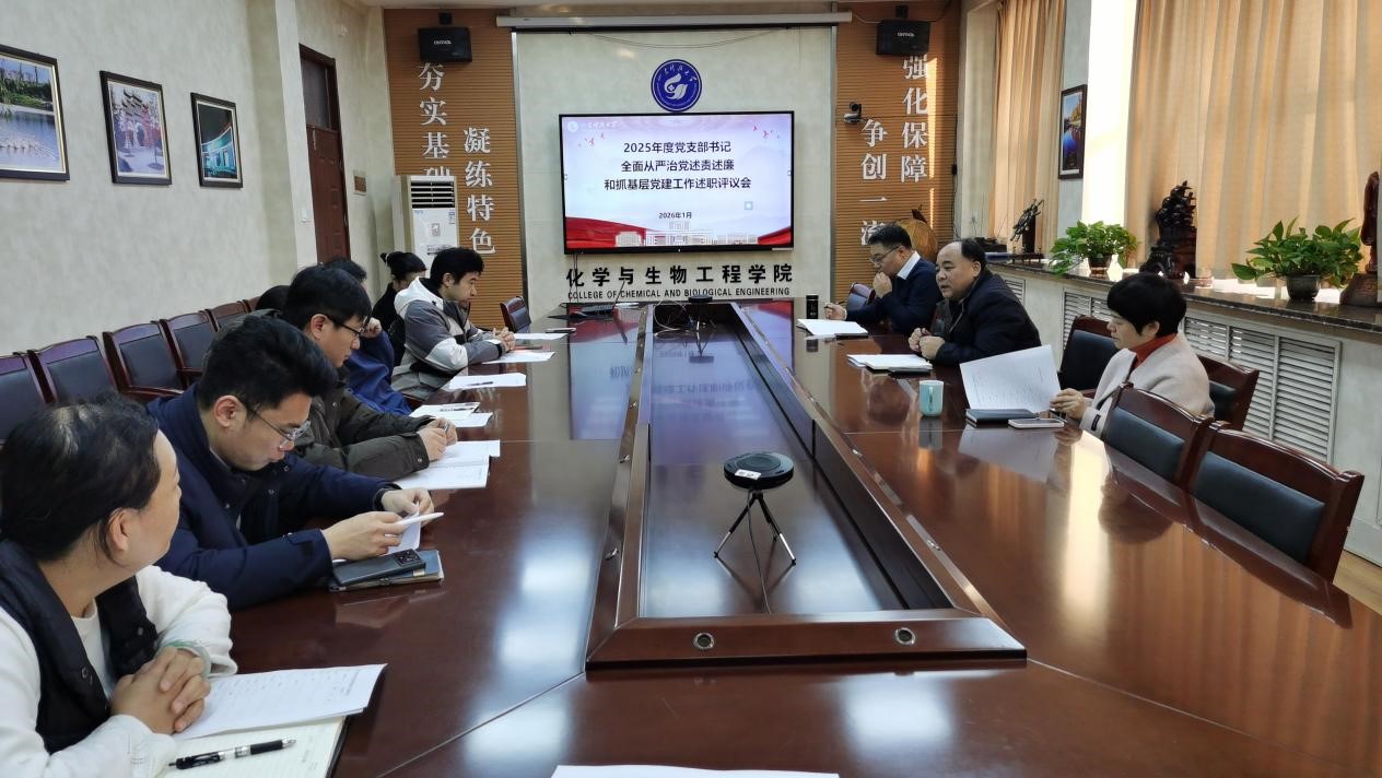 128日,化工学院党委在J2-422会议室召开2025年度党支部书记全面从严治党述责述廉和抓基层党建工作述职评议会。学院党委领导班子成员、各党支部书记参加会议,会议由学院党委书记窦存增主持。
