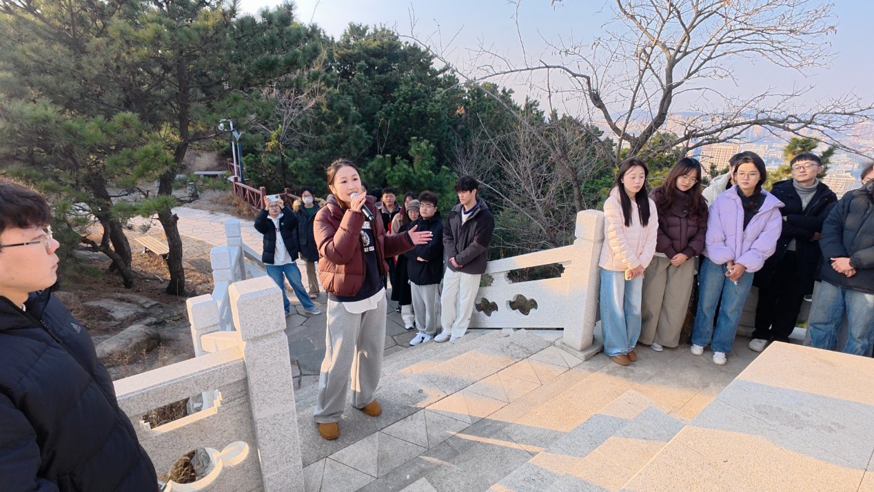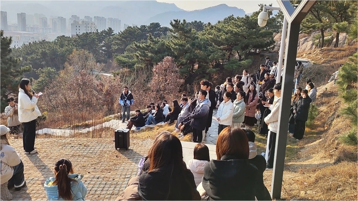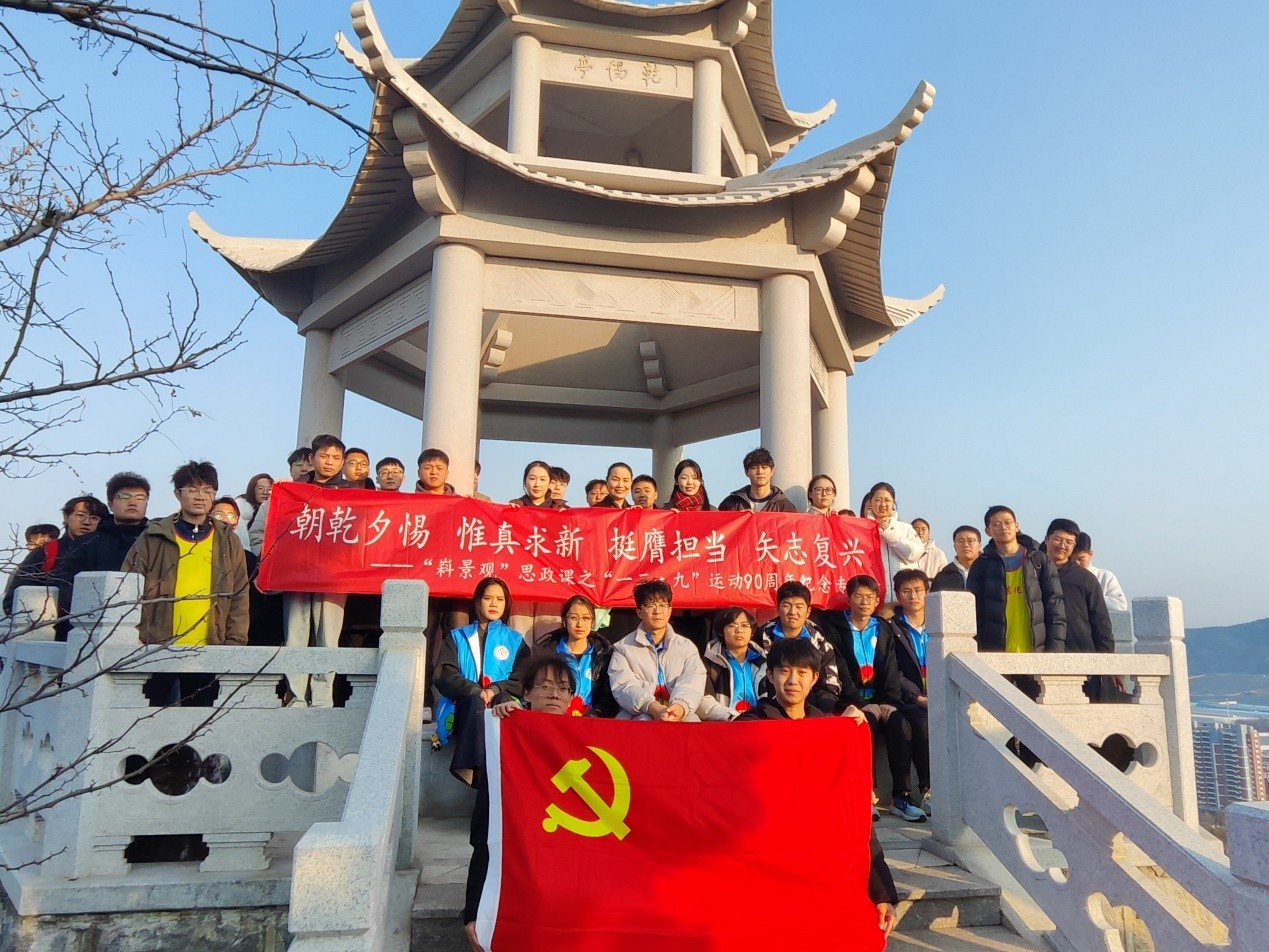 12月9日,恰逢“一二·九”运动90周年纪念日,山东科技大学“嵙景观”思政课之“一二·九”运动90周年纪念专题课程在校内笔架山开讲。这次课程以“朝乾夕惕,惟真求新,挺膺担当,矢志复兴”为主题,由化工学院团委书记兼学工办主任易凡主讲,学院辅导员李玲玲、郝俊英、学生党支部及各学生组织代表百余人参加了课程。师生一道徒步笔架山,上了一堂“行走的”沉浸式思政课。
