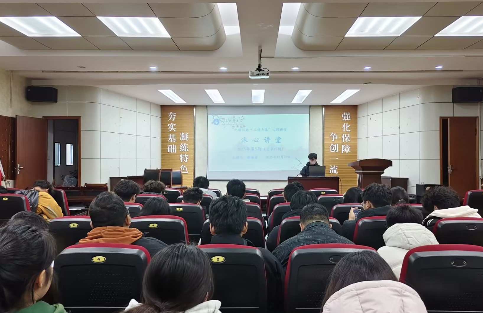 12月23日,化工学院第十六期沐心心理讲堂在J2-104报告厅举行。本期讲堂以“解锁幸福的科学解码——积极心理学”为主题,由学院心理健康联合会副会长张益豪主讲,心健联全体成员参加。
