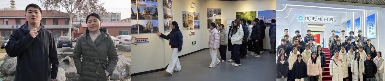 经过充分准备,三校区同上一堂思政课的创新实践火热开启。首先,易凡以简单的新年问候开篇,随后,三校区师生百余人跟随济南校区主讲老师卓国梁、贺建芹漫步校园的镜头,以“文脉赓续”为线索,“云逛”济南校区。两位老师时而缓步漫谈,时而驻足介绍,时而回顾校史,让泰安、青岛校区的同学对济南校区有了较为全面的了解。接着,镜头切换至泰安校区,主讲老师杨文园带领师生走进泰安校区校史馆,一帧帧老照片记录建校初期历程,一件件旧教具承载育人初心,校史底蕴与山科校训深度交融,让师生深刻体悟到了“坚韧不拔、奋发图强”的科大精神;接下来,视角转入素有“江北最美校园”美誉的青岛校区,易凡带领师生走进校史馆,由专业讲解员向大家介绍我校在“两校并立融合、山东煤矿学院、山东矿业学院、山东科技大学”4个历史时期的发展脉络,以生动的讲解呈现了新世纪山东科技大学揭牌成立以来的发展成就。