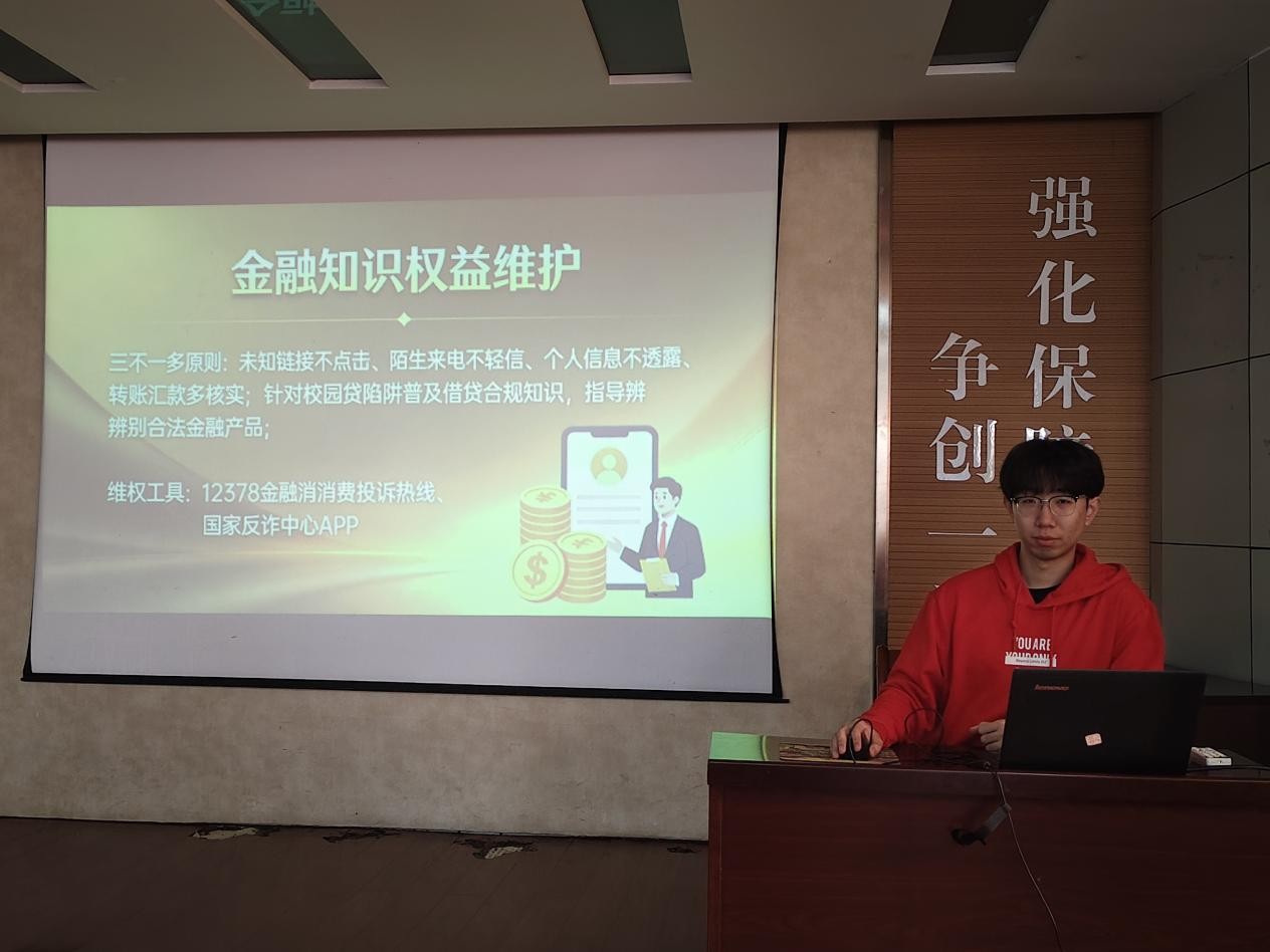 11月3日,化工学院在J2-104报告厅举办“金融知识进校园”主题宣讲活动。由优选计划辅导员李子龙主讲,旨在提升学生金融风险防范能力。