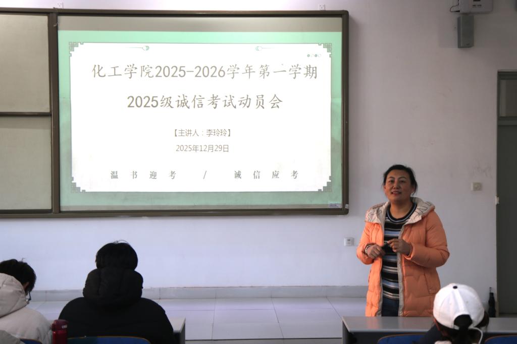 12月29日,化工学院在J1-228教室召开2025级本科生诚信考试动员会。本次会议由2025级辅导员李玲玲老师主持,全体2025级本科生到场聆听。